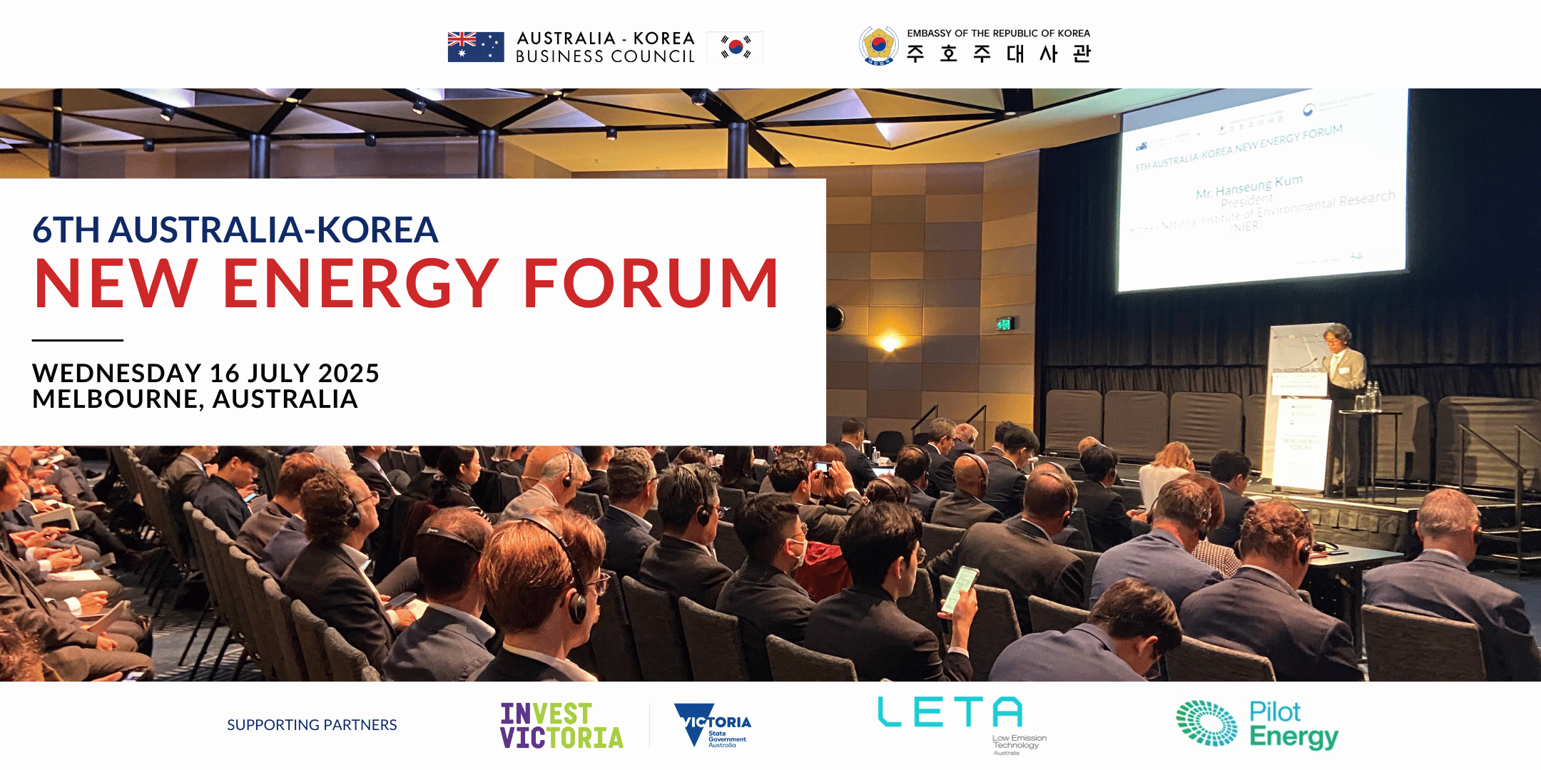 Thank you to our co-host, the Embassy of the Republic of Korea in Australia and all our event partners, Invest Victoria, Low Emission Technology Australia (LETA) and Pilot Energy Limited for their invaluable support in fostering Australia-Korea Energy relationship.β
