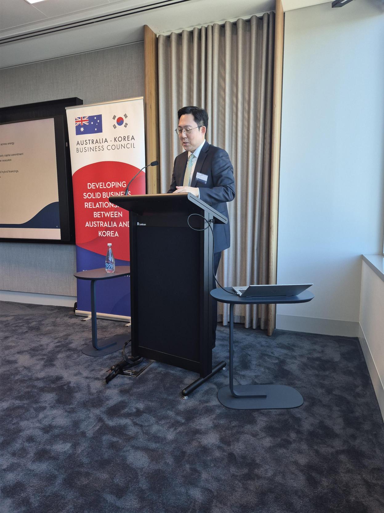 Participants heard from K‑SURE Deputy President Mr. Jaeyong Jung and Mr. Woo Jae Byeon, Director of the Project Coordination Department, who shared practical perspectives on how K‑SURE supports Australian companies, large‑scale projects and cross‑border transactions.